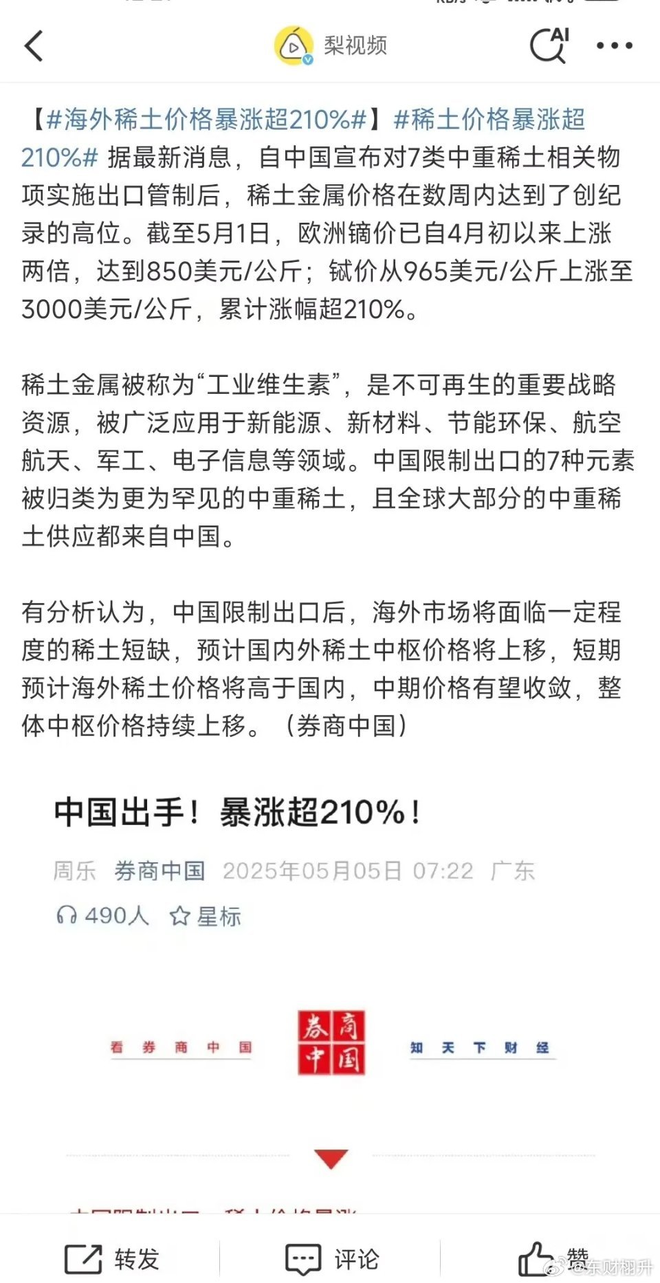 此部分可以进一步分析国家对稀土的最新消息对行业内外产生的具体影响,例如对产业链上下游、对市场竞争格局、对创新能力等方面的影响。